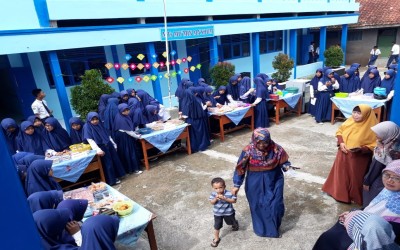 (Humas MTs. Mumash). Semarak kegiatan Bazar di MTs. Mu'min Ma'shum menghiasi keceriaan siswa MTs. Mu'min Ma'shum. Berbagai pajangan dan hasil kreasi makanan dipajang